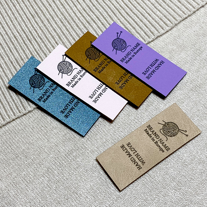 This Faux leather label Model EP-M161 can be customized just in a few seconds, very simply and quickly using the graphic builder, where you can choose the color of the faux leather, you can insert your own logo or any other graphics with a complex design, and you can customize the label with your own text, for example your brand name, a slogan, manufacturer's name, and the country where your product was manufactured.