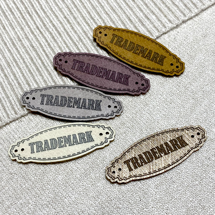 This Imitation leather label Model EP-M102 can be customized just in a few seconds, very simply and quickly using the graphic builder, where you can choose the color of the faux leather, you can insert your own logo or any other graphics with a complex design, and you can customize the label with your own text, for example your brand name, a slogan, manufacturer's name, and the country where your product was manufactured.
