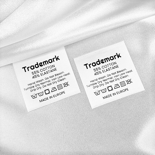 Satin label that includes technical information about the material composition, washing and care symbols, but also the manufacturer's name or logo. This type of textile label is made using the most advanced technologies in the digital printing field on a textile support. The labels are printed on a special satin by thermal transfer method, with an impressive print quality and high wash resistance.