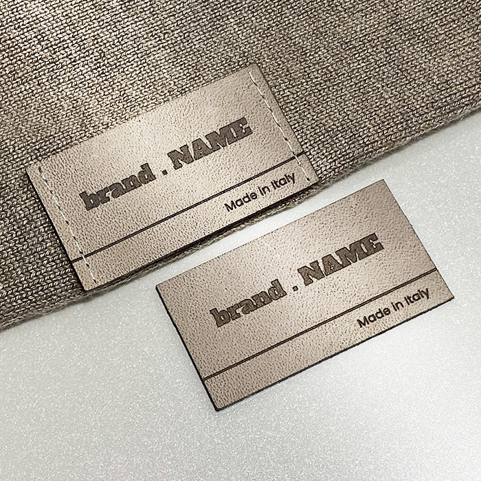 Personalized label EP-M22 made of genuine leather for clothes, bags, shoes and various clothing accessories.