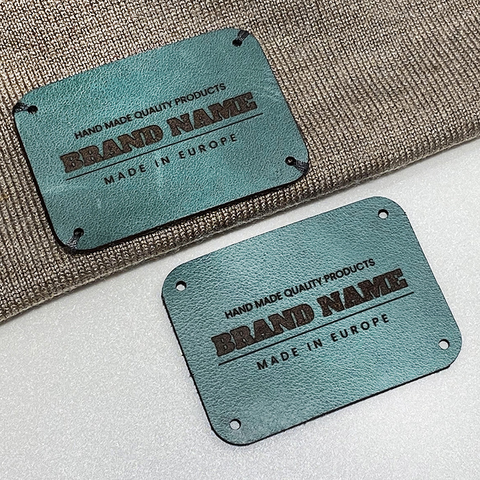 High quality natural leather label EP-M23, personalized by laser engraving with the manufacturer's name or logo, suitable for hoodies, sweaters, hats, caps and other clothing items. This leather label model is made of high-quality genuine leather, using the latest generation equipment and professional laser engraving or embossing methods.