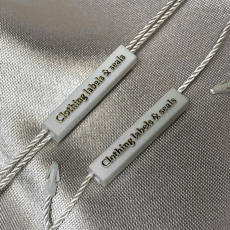 Custom plastic seal tag ST-M208 for fashion products, such as clothes, footwear, bags, jewelry, clothing accessories, etc.