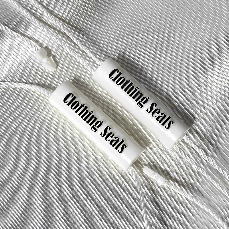 Plastic seal with cylindrical shape ST-M258 and an attractive design and custom text on two sides, suitable for various clothing items such as jeans, pants, ladies and men suits, and many other clothes, shoes and bags. This type of seal is made of high quality materials, using the most advanced technologies in the field.