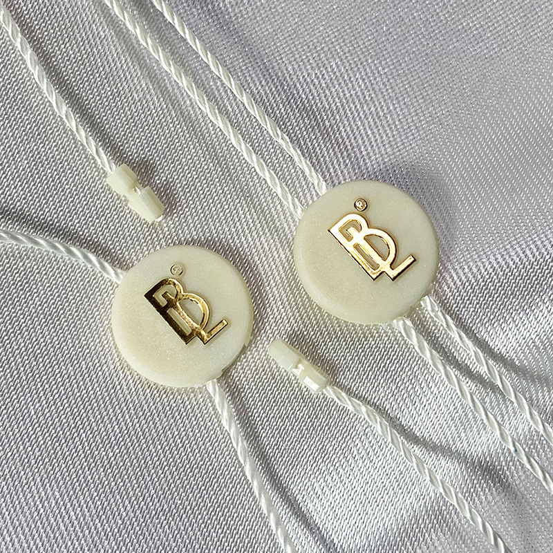 Plastic seal with an elegant design and a round shape ST-M35, can be customized on two sides with the Brand name or the emblem/trademark, and it is ideal for products such as clothes, bags, shoes. This type of seal is made of high quality materials, using the most advanced technologies in the field.