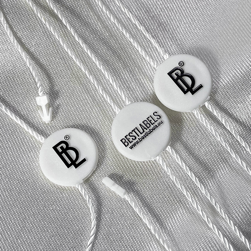 Plastic seal with an elegant design and a round shape ST-M53, can be customized on two sides with the Brand name or the emblem/trademark, and it is ideal for products such as clothes, bags, shoes. This type of seal is made of high quality materials, using the most advanced technologies in the field.