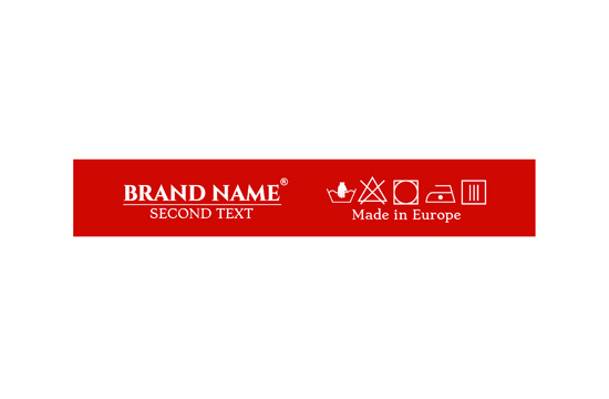 Laundry care label customized with washing symbols, and the Brand name or logo, suitable for any textile product, especially clothing items. This type of textile label is made using the most advanced technologies in the digital printing field on a textile support. The labels are printed on a special satin by thermal transfer method, with an impressive print quality and high wash resistance.