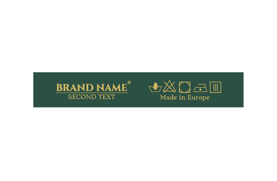 Laundry care label customized with washing symbols, and the Brand name or logo, model TL-84 suitable for any textile product, especially clothing items. This type of textile label is made using the most advanced technologies in the digital printing field on a textile support. The labels are printed on a special satin by thermal transfer method, with an impressive print quality and high wash resistance.