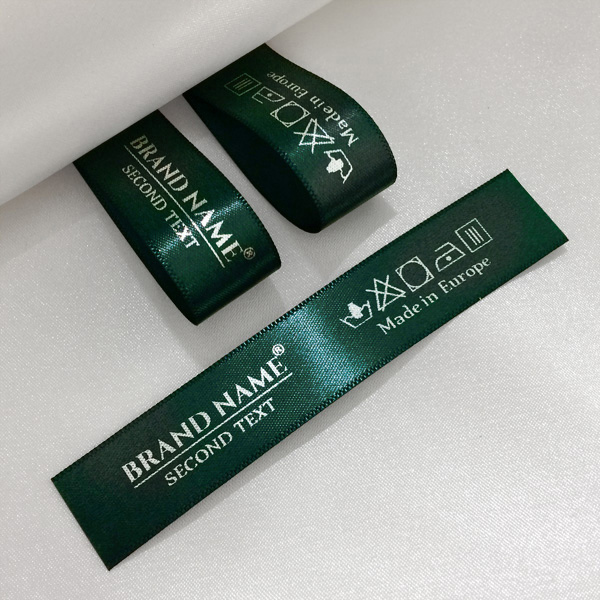 Custom label TL-M91 printed on satin fabric suitable for clothing, clothes accessories, and other textile products.