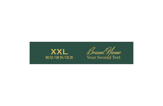 Customized clothing size label with the Brand name, made of satin rolls, cut and serialized according to the requirements, suitable for clothing. This type of textile label is made using the most advanced technologies in the digital printing field on a textile support. The labels are printed on a special satin by thermal transfer method, with an impressive print quality and high wash resistance.