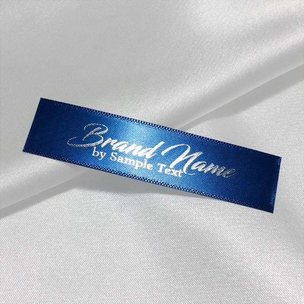 Custom label TL-M73 printed on satin fabric suitable for clothing, clothes accessories, and other textile products.