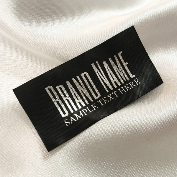 Custom label TL-M15 printed on satin fabric suitable for clothing, clothes accessories, and other textile products.