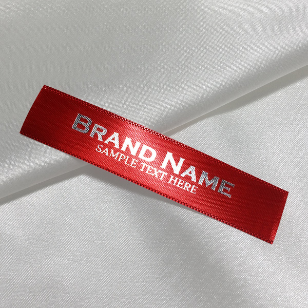 Custom label TL-M136 printed on satin fabric suitable for clothing, clothes accessories, and other textile products.