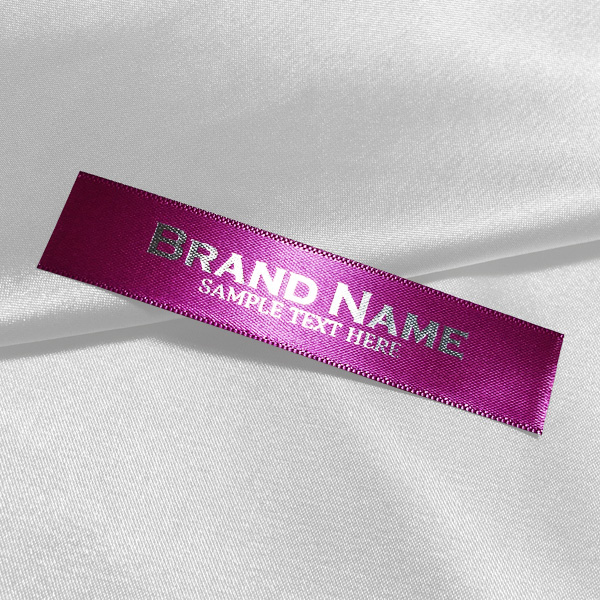 Custom label TL-M66 printed on satin fabric suitable for clothing, clothes accessories, and other textile products.