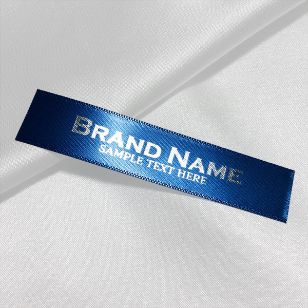 Custom label TL-M75 printed on satin fabric suitable for clothing, clothes accessories, and other textile products.