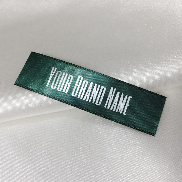 Custom label TL-M83 printed on satin fabric suitable for clothing, clothes accessories, and other textile products.