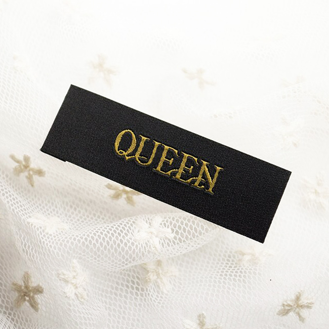 Custom woven label WL-M16 Digital embroidered on a fabric suitable for clothes, clothing accessories, and other textile products.