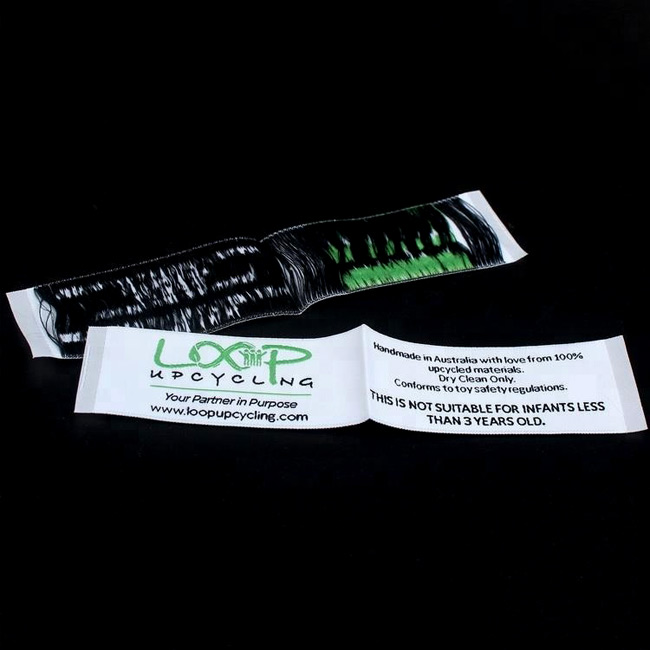 Custom woven label WL-M62 Digital embroidered on a fabric suitable for clothes, clothing accessories, and other textile products.